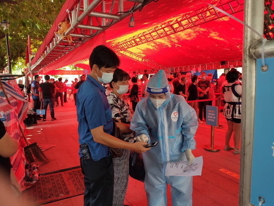 6月8日,公司110名志愿者们于7:40在图书馆门前集合完毕,抱着战必胜的信心与决心前往黄埔区黄埔街和鱼珠街各个检测点进行志愿服务活动。公司志愿者们分批安排到黄埔街街心公园、文冲街社区卫生服务中心、黄埔东苑社区、少年宫、新溪小区、城市之光小区、大沙东地铁站C口、怡园小区、黄埔中医院、瑞东花园、港湾北社区等11个核酸检测点进行志愿服务,他们分工合作,有序地组织群众排队、扫码登记、分组检测、分发检测物资,确保检测工作有序进行。即使正午烈阳当空,志愿者们始终坚守岗位。由于长时间的工作,部分志愿者喉咙已经沙哑,眼睛被汗水刺痛,衣服被汗水浸湿,但全身心地投入使他们全然忘记了酷热与疲惫。黄埔区的夜晚星光点点,我们也如期圆满完成核酸检测志愿服务任务。