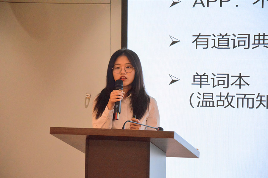 秦思莹从考试介绍、考试流程及考试策略三个方面进行分享。她提醒同学们应养成良好的习惯,填写答题卡时需准确填写个人信息并强调了答题卡的查收时间。秦思莹针对听力、阅读给出了相应的做题方法,并向同学们推荐了一些利于备战专四的读物。陈家怡从语法与词汇,完型填空,阅读与写作三个方面进行了经验分享。她建议我们准备单词本利用闲暇时间温故而知新并熟练掌握基本语法知识,总结了完型填空的做题步骤和方法,强调了阅读的复盘和写作的结构。此外,同学们要重视词汇的积累,合理规划时间进行备考。