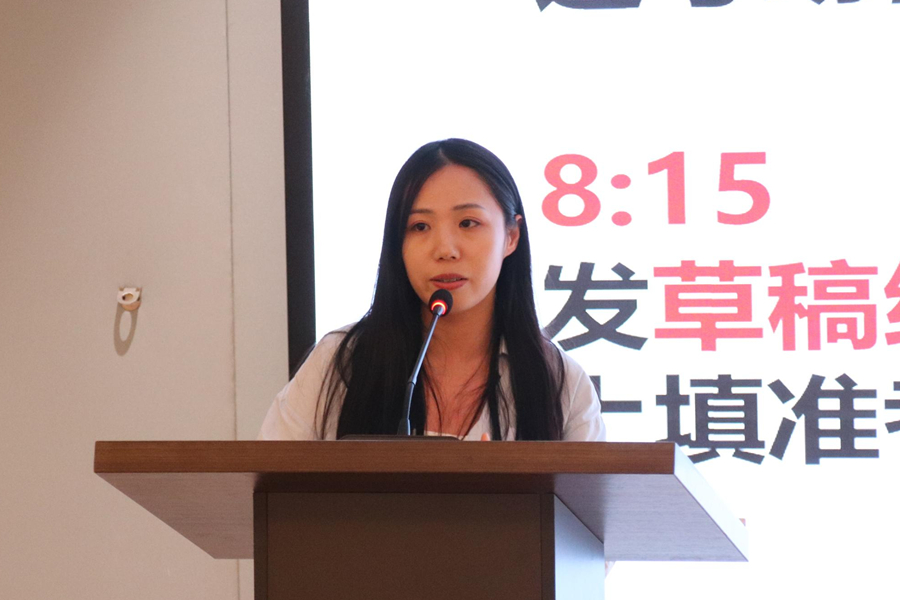 会议伊始,徐超作指导发言。他强调考级考证及学科竞赛的重要性,并进一步提出要加强公司学风的建设。徐超从英语专四考试的备战时间、复习资料的选择及做题时间等方面进行介绍,为备战英语专四考试的同学提供了明确的规划指引。