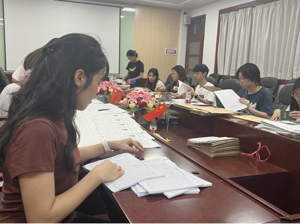档案整理工作时间紧、任务重。为确保毕业生档案材料的准确无误,辅导员们为各位助理辅导员详细介绍了档案文件袋需要包含的物品:学位证、毕业证、团员证和成绩单以及其他相关文件,要求做到逐项清点,仔细核对,避免材料缺失、装错等问题的发生。随后,助理辅导员们将材料分类、整理和打包,根据不同班级分设发放点,为有序推进信息登记,切实提高材料发放效率做好了充足的准备。