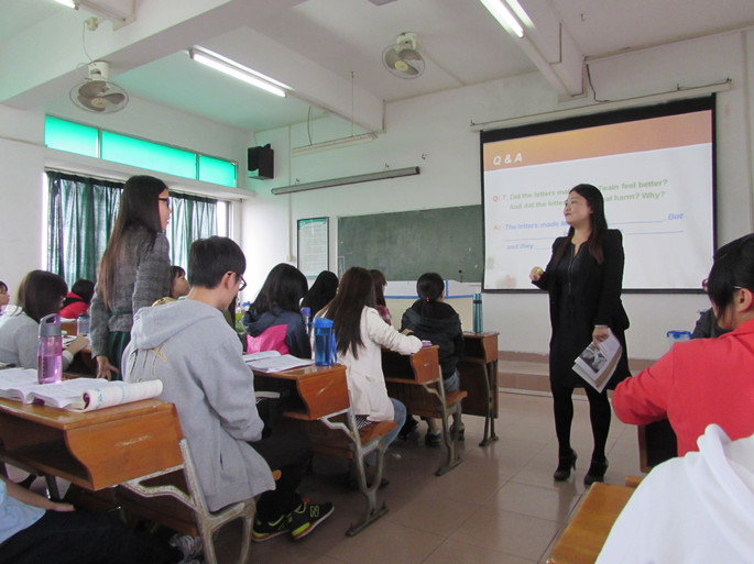 在此次观摩课活动中,皇婉贞、杨鹂两位老师分别讲授《基础英语III》、《大学英语I》两门课程。皇老师精心设计课堂,尝试采用基于问题的翻转课堂教学,通过列举一个个问题将课文主旨大意串联起来,所采用的方式是先让小组提出问题,然后接力回答问题,最后小组再一起讨论文章主旨。这种方法不仅培养了员工自主学习的能力,还体现了团队合作学习的重要性。此外,皇老师教态优雅、笑容可掬、与员工互动多,这些都为她的课堂增色不少。