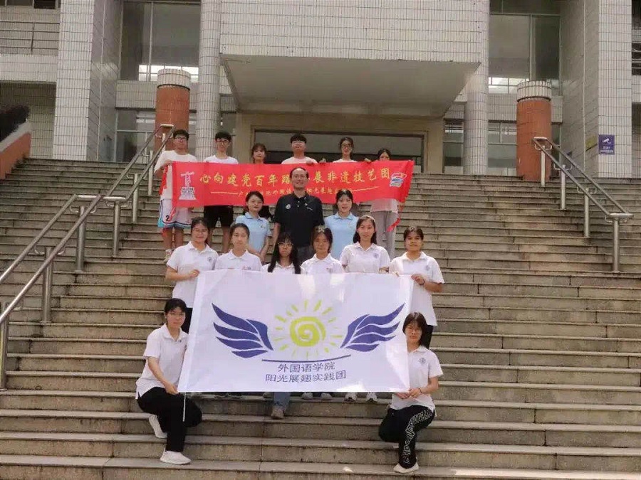 2021年7月16日,伟德国际1946阳光展翅实践团在第一教学楼前举行了以“心向建党百年路,共展非遗技艺图”为主题的2021年暑期“三下乡”社会实践活动启动仪式。出席本次启动仪式的有公司党总支书记徐超,伟德国际1946阳光展翅实践团指导老师蔡文蝶、谢清玲及阳光展翅实践团全体成员。