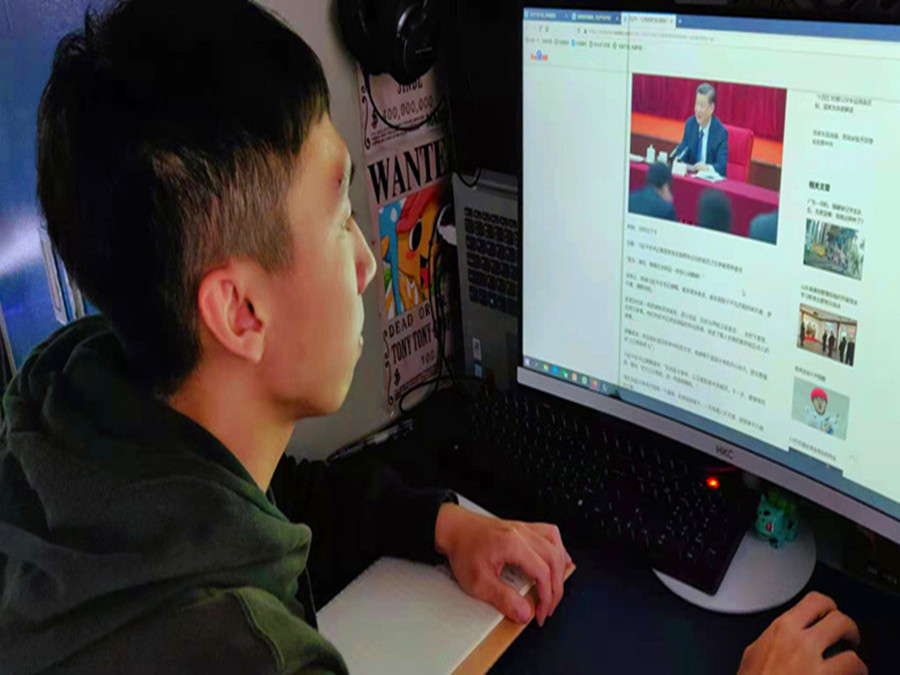 18级员工党支部员工党员黄铭达在认真领会习近平总书记讲话内容