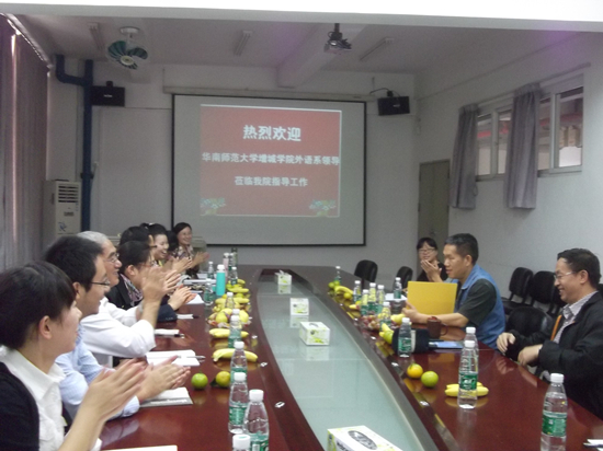为顺利开展大学英语教学改革,对2012级员工的大学英语采取分层教学的方式,提高教学质量,11月15日下午在公司教学处和我系的安排下,公司教学处副处长、评建办主任左灵芝、外语系主任胡光忠、外语系副主任袁鑫、教学处部分教师、大学英语教研室主任以及2012级大学英语全体教师共同到华南农业大学参观国家级大学英语教学示范基地,向兄弟院校学习大学英语的教学改革经验。交流会由华南农业大学伟德国际1946经理何高大教授主持。