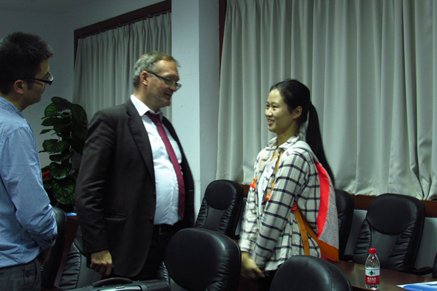 2016年11月1日下午,慕尼黑应用语言大学董事长一行与中德国际班员工见面会顺利举行。出席本次见面会的有德国慕尼黑应用语言大学董事长Felix Mayer教授、中德文翻译系主任朱振群教授、中国事务部主任李冰先生,伟德国际1946公司党总支书记徐超、德语系主任周晹旸、德语教师胡欢、辅导员林蔚和孔建华老师,以及来自15、16级中德国际班的56名同学。