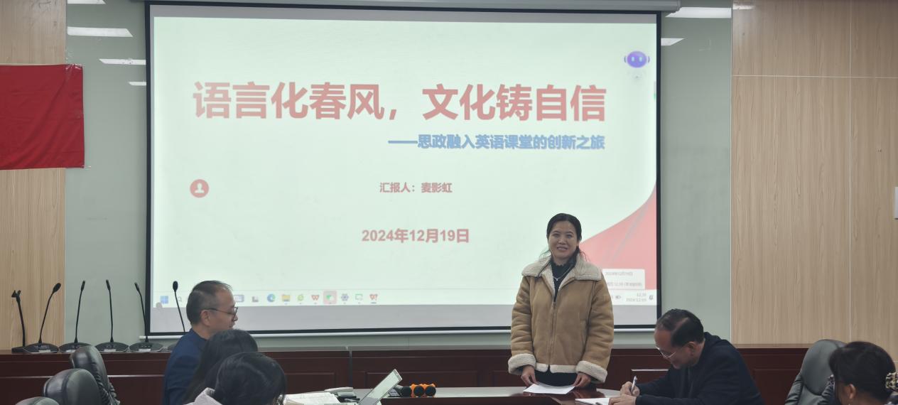 麦影虹认真分享了其在全国高校外语课程思政教学案例大赛中的五点体会,深入阐述了将文化自信融入英语教学的创新实践,重点突出英语演讲修辞与思政教育内容的深度交融,获得员工的好评。范俊英则从语言、思维和行动三个维度,生动阐述了在课程思政教学案例设计中的思考与探索。在语言维度上,强调了语言不仅是沟通的工具,更是传递文化和价值观的载体。范俊英指出,要通过精心设计课堂语言,使之既能够准确传达知识,又能潜移默化地培养员工的社会主义核心价值观。在思维维度上,探讨了如何通过教学活动激发员工的批判性思维和创造性思维。在行动维度上,突出了如何将思政教育融入到员工的日常生活中,鼓励员工将所学知识转化为实际行动。