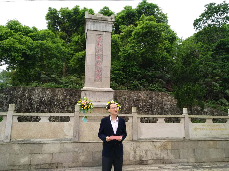 “青山绿水长留生前浩气,苍松翠柏堪慰逝后英灵”。最后,党总支徐超书记在革命烈士墓碑前做了总结讲话。徐超书记以“抚今追昔,饮水思源”作为切入点展开了对往昔、今朝和未来三个重要部分的重点阐述。他号召现场所有员工要做到以下三点:一、要永远牢记在血雨腥风的战争岁月,无数革命烈士为民族解放事业,国家和平统一伟业赴汤蹈火,舍生取义的历史;二、要坚定共产主义的理想信念,弘扬革命先烈们的革命精神,继承和发扬革命烈士忠于党,忠于人民的崇高品质,树立正确的世界观、人生观和价值观。三、要勤学、修德、明辨、笃行,坚持练就过硬本领,勇于创新创造,矢志艰苦奋斗,锤炼高尚品格为实现中华民族的伟大复兴的中国梦做贡献。