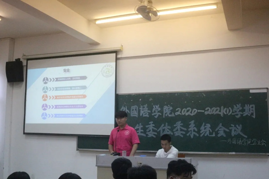 会议伊始,伍思颖老师对20级新加入的生委体委表示欢迎。同时,她强调“校-院-班”三级联动的重要性,希望各班生活委员和体育委员能够及时传达和反馈信息,承担起员工干部应有的责任。同时她相信在接下来的一年中各班的生活委员和体育委员会有更出色的表现。