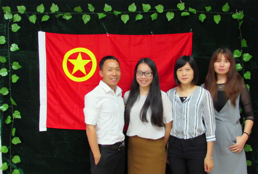 在活动号召发出之后,公司团员青年积极响应,分别来到背景墙与团旗合影。团员们在火红的团旗下,留下了一张张灿烂的笑脸,展示出外院青年的朝气蓬勃和青春向上的精神风貌,他们也将自己的青春誓言留在了这一张合影上,看似一次简单的活动,却在不经意之间流露出了他们对祖国的热爱。