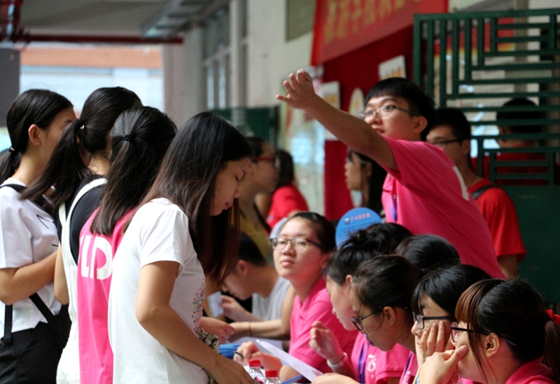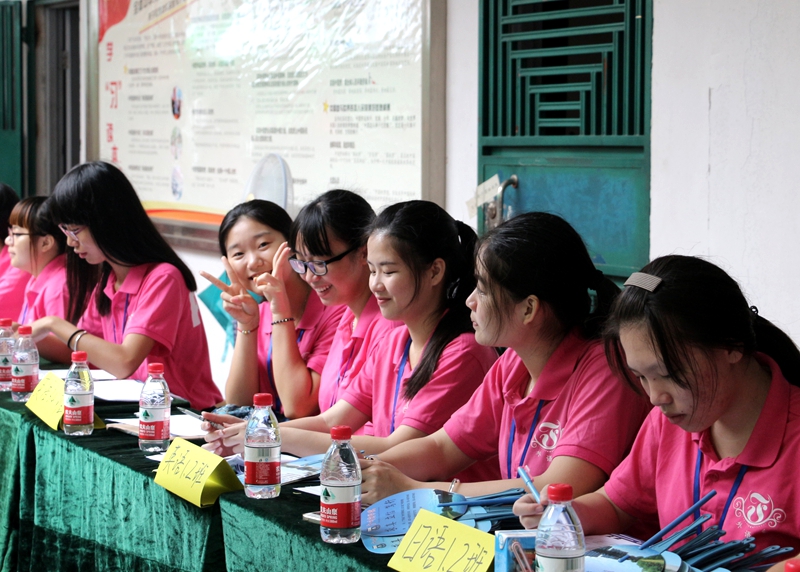 清晨五点半,那一抹抹品红就从公司的各个公寓出发前往科教兴国大楼的架空层大本营,一起吹响了迎接2016级新生的集结号,摆好桌椅,整理着装,束起马尾,默记流程,以充满激情与活力的精神面貌迎接一波波的鲜肉来袭。