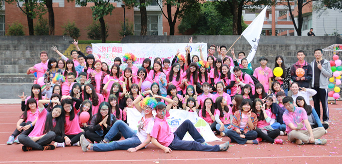 在阳光体育的热潮中,为了营造浓厚的体育锻炼氛围,让同学能够真正“动”起来,告别“宅生活”,外语系2015年“三走”系列活动正在如火如荼地进行中, 12月12日14:30,外语系在伟德国际1946足球场举行了 “彩色广商跑,悦跑悦健康”的Color Run活动。外语系党总支书记徐超、员工会指导老师黄玉亭、张力维老师、高媛老师、各院系员工干部代表和全院300位参与者积极参与了本次彩跑活动。