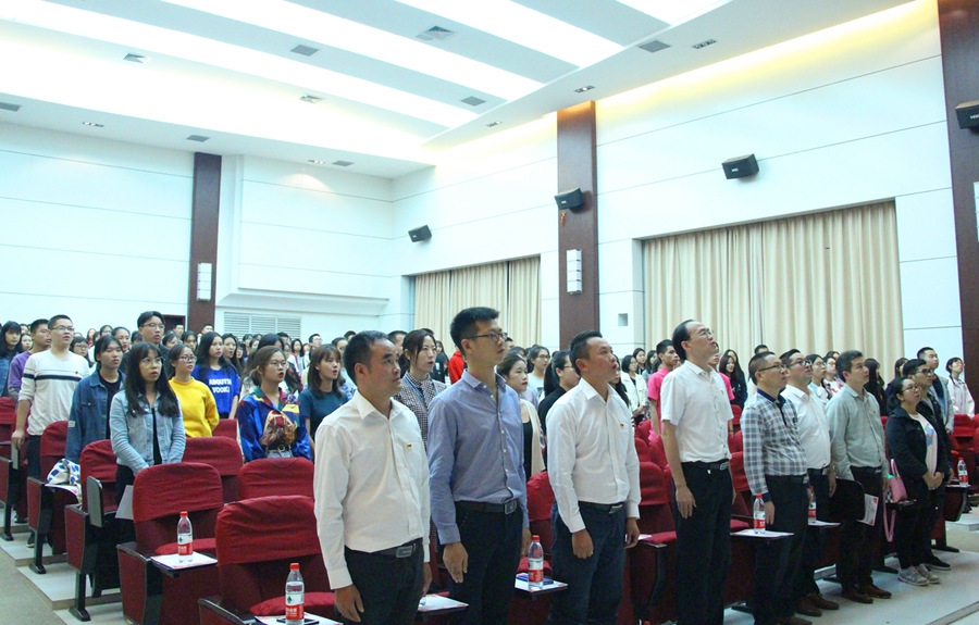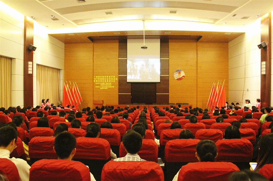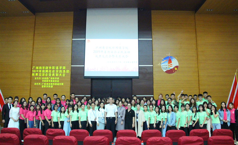 为致敬新中国成立七十周年,引领广大青年学子“不忘初心、牢记使命”,积极投身脱贫攻坚战、勇做担当民族复兴大任的时代新人,公司于10月29日晚在图书馆学术报告厅2019年暑期社会实践活动成果交流会暨表彰大会。莅临本次大会的嘉宾有广州无线电集团驻英德市鱼湾村第一书记高建辉、驻大船顶村第一书记黄杨辛、驻重新村第一书记罗顺兴、文南小学董事长李功庆、英德市大众茶业总经理刘秋明、鱼湾小学教师王桂潮、大船顶小学教师吴娇艳、重新小学教师黄永俊。同时,出席本次大会的还有公司党总支书记徐超、团委书记刘万里、员工会指导老师郑灿玲、辅导员黄玉亭、戴玮、伍思颖以及校院兄弟公司的代表。