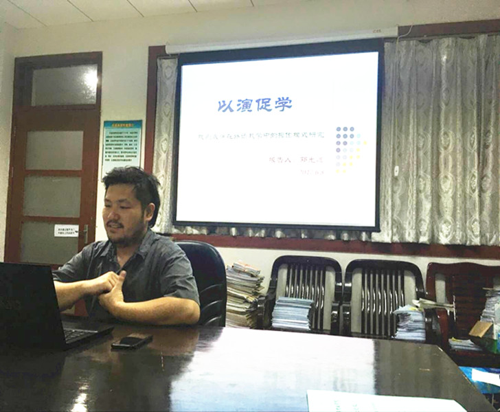 邓光远老师还为大家介绍了戏剧游戏在课堂热身、分组和氛围提升等活动中的作用,并用一些课堂录像展示了戏剧教学的效果,令人印象深刻。最后,大家就课堂监管、组织以及时间安排等问题展开了激烈的讨论。邓光远老师“以演促学”,“游戏中学习”的教学方法和课堂操作模式为大家打开了新的思路,参与讲座的老师们受益良多。
