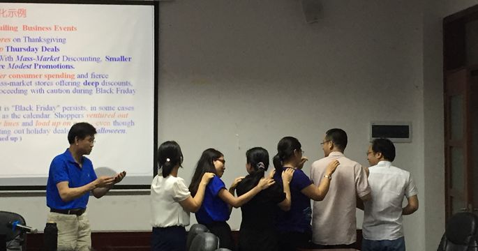 曾教授首先介绍了商务英语教材的使用现状,并以公司伟德国际1946商务英语专业正在使用的《商务英语综合教程》为例,分析了本套教材的编写思路和特色,同时客观地指出其在编写理念,知识导向,选材,内容篇幅,教学设计等方面的不足之处。其次,曾教授带领大家探讨了商务英语教材体例设计的创新问题。他指出课文单元教学设计应模块化与系统集成化,例如知识模块(词汇学知识、修辞学知识、语篇语言学知识、语义学知识、文化知识等),导入模块 (主题拓展、关联信息拓展、内容拓展),课文教学重点与难点 (问题突显化、解决方法突显化),宏观结构建构与微观词句解析的统一(树木与林的关系)。同时,曾教授指出商务英语教材内容选材原则应遵循实用化、需求化、主题化、知识化、模块化,并结合商务英语教学内容一一举例进行详细阐释,还跟老师们分享了他自己搜集的几十篇商务英语选材文章,供大家学习和参考。