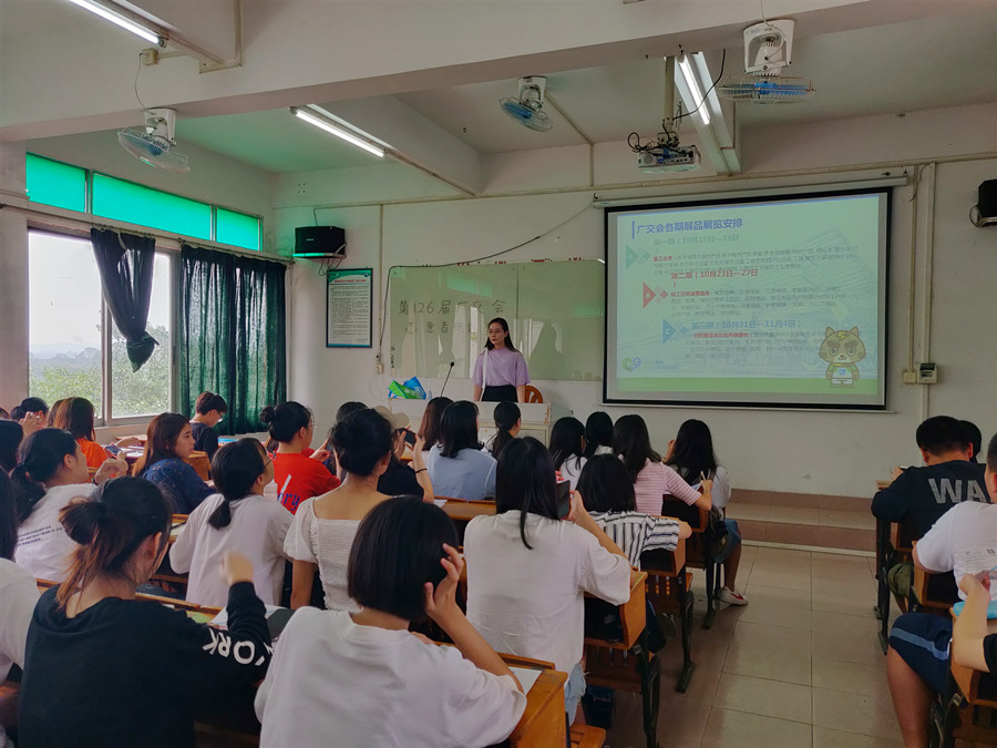 为大力弘扬文明服务和志愿服务精神,公司在第126届广交会来临之际,经过面试的严格筛选,成功组建了70人的第126届广交会志愿服务队。并于10月13日在三教301开展了志愿者培训会。