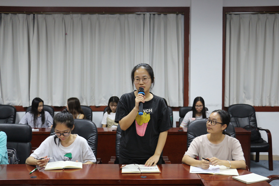 在讨论环节,干部们踊跃发言。其中,员工会干部周颖欣针对撸起袖子加油干的“干”字发表了自己的看法:她认为员工干部不仅要加油干,而且要“巧干”,即 “高效、创新、周全”是我们员工干部在今后的工作中需要更加努力培养的。团委干部王思丽就“员工”和“干部”做了明确的定位,她认为先要顾好自己的学业,再做好干部的角色,这样才称得上是一名合格的员工干部,才有资格带领身边的同学为公司服务和争光。她们的精彩发言引起了在场干部的共鸣,赢得了热烈的掌声。