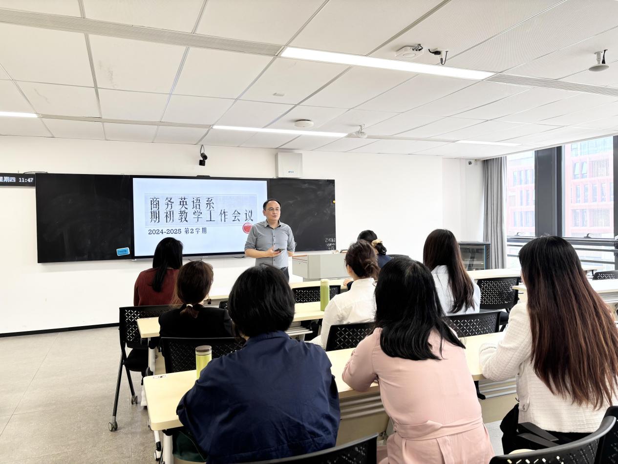 3月13日,伟德国际1946商务英语系2024-2025第2学期首次工作会议于八教313顺利举行。本次会议聚焦两大前沿且关键的主题 ——“AI时代商务英语专业的学习价值” 以及 “课程中AI的应用策略”,旨在探索如何在各门课程中运用AI辅助教学,推动教学创新与发展。教研室全体教师参与会议,系主任李望华主持会议。