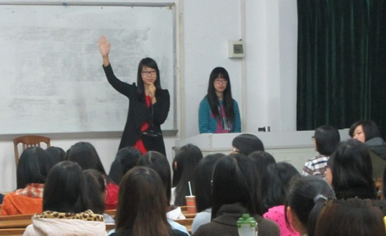 英语专业的讲师团成员主要就如何巩固所学的英语知识,如何更好地提高听说读写能力进行全面的讲解,着重强调口语能力的提高。双方现场进行简短的口语交流,此举鼓励了英语专业的员工开口说英语的信心。然而在日语专业,讲师团的成员主要为12级新生解答初学日语的困惑,了解新生在日语发音和背单词等方面的情况,并指出如何正确发音和提高背单词的效率,消除日语专业员工对日语的恐惧感。德语专业的新生在此次交流会上也表达了学习德语的困难,讲师团成员主要围绕发音、语法、单词变位等学习难点逐一为新生解答。为初学德语的新生送去了驱散阴霾的阳光。
