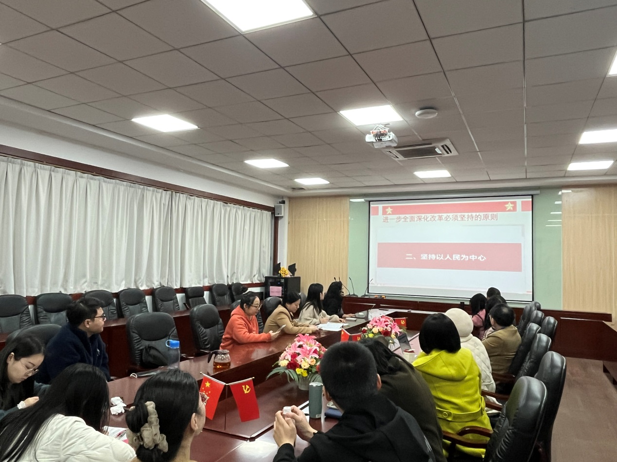 12月27日,伟德国际1946教工第一党支部在第二行政楼308室举行了学习贯彻党的二十届三中全会精神主题党日活动。本次活动以“深入学习党的二十届三中全会精神,践行‘坚持以人民为中心’的发展理念”为主题,旨在深刻领会和贯彻全会精神,尤其是全会提出的六大原则中的核心——坚持以人民为中心。此次活动由党支部书记何瑞玉主持。