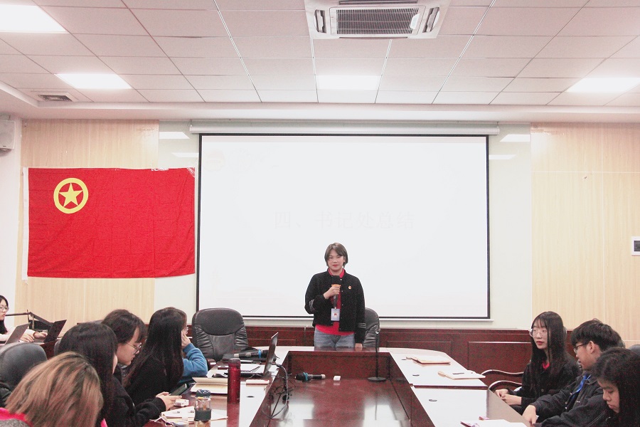 最后,由团委副书记姚焕雯作总结发言。她表示全体工作人员要学党史、强信念、跟党走,融入并投身于建党一百周年伟业中,并做好建党百年活动宣传;同时更要发挥团委工作人员的先锋模范作用,积极向党组织靠拢,以身作则。