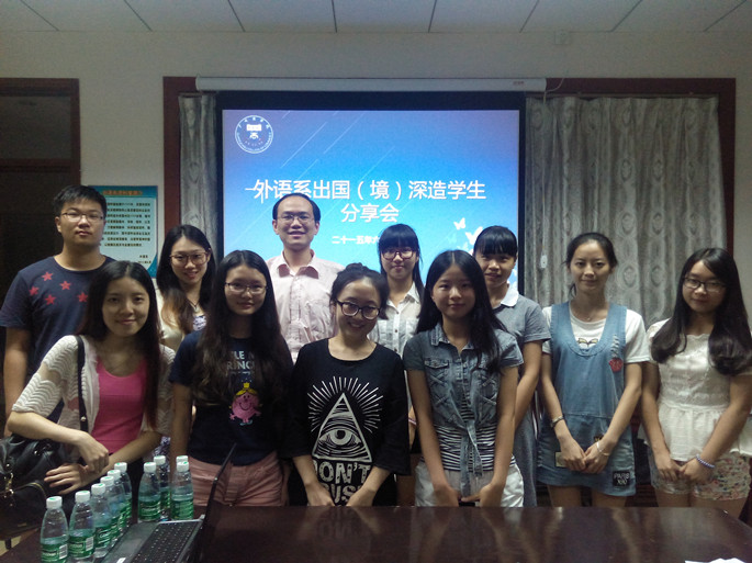 为拓宽员工的国际视野,提供员工出国(境)深造的指导与服务,6月12日15:00,外语系在第二行政楼307办公室举行了出国(境)深造员工经验分享会。外语系2015届优秀毕业生陈梦桑(澳洲新南威尔士大学口译专业研究生)和韩媛媛(香港大学翻译专业研究生)分享了她们申请出国(境)深造的心得体会。外语系党总支书记徐超和12级辅导员黄玉亭出席本次分享会。