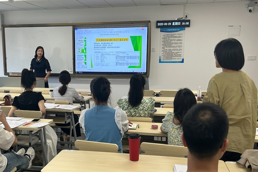马海燕结合自身及所在公司成功申报国家一流本科专业和一流本科课程的经验,先从宏观上介绍了一流专业建设的原则及一流课程的课程要求,再从微观上剖析地方院校在国家一流专业和一流课程申报过程中的注意事项,结合项目申报书的栏目,细致地讲解了国家一流本科专业和一流本科课程申报书撰写的要点、难点和注意事项。马海燕还分享了她通过混合式教学在教学设计及教学法方面的创新及成果,为教师们在教学内容的选择及混合课堂的实施提供了新思路。在场的教师纷纷表示受益良多,并就一流课程申报的要求、混合式课程的课时设计、教学大纲设计、课堂成果形式等展开了热烈地讨论与交流。教师们收获了国家一流专业和一流课程建设的方法指导,对自身课程建设有了更深入的思考和更为明确的目标。
