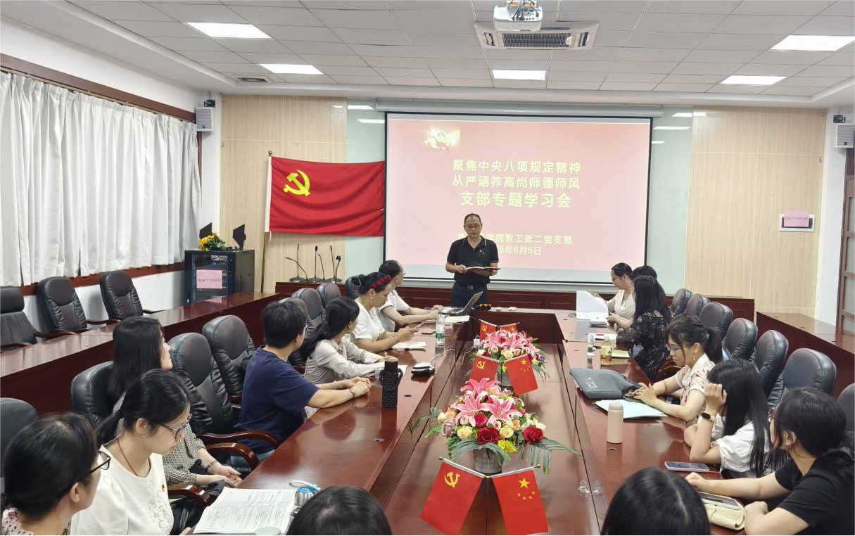 6月5日,伟德国际1946教工第二党支部在第二行政楼308会议室召开以“聚焦中央八项规定精神 从严涵养高尚师德师风”为主题的深入贯彻中央八项规定精神学习教育专题会,会议由支部书记唐海民主持,全体党员参加。