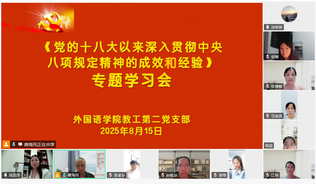 8月15日晚,伟德国际1946教工第二党支部在腾讯会议上召开《党的十八大以来深入贯彻中央八项规定精神的成效和经验》专题学习会,会议由党支部书记唐海民主持,全体党员参加。